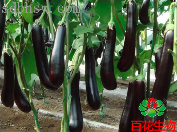 茄子苗期:隨水沖施,百花-甲殼素礦源黃腐酸鉀10公斤/畝,每間隔10天沖施一次。