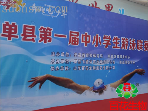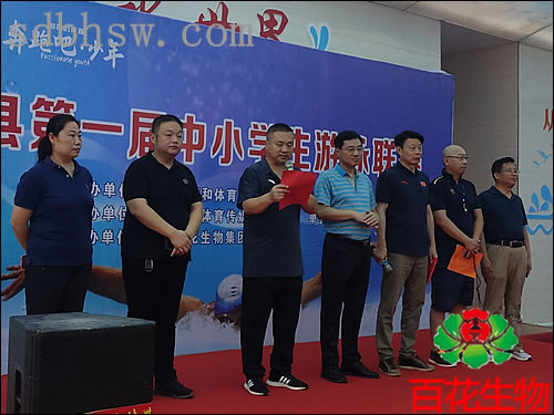 單縣第一屆中小學(xué)生游泳聯(lián)賽開幕,百花生物集團(tuán)成協(xié)辦單位
