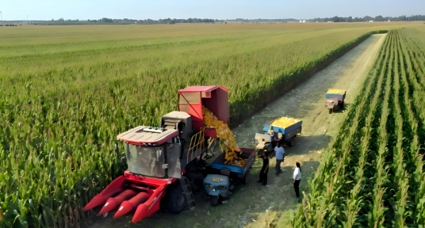 眼下正值玉米收獲期,在山東省菏澤市單縣徐寨鎮(zhèn)的規(guī)?;N植玉米田里,玉米收割機(jī)正在田間奔跑忙碌著采收玉米。